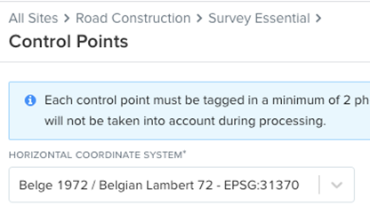 Wenn Sie einen neuen Vorgang erstellen, werden Sie im zweiten Schritt aufgefordert, das Koordinatensystem auszuwählen, das bei der Verarbeitung verwendet werden soll. Dieses ist standardmäßig auf das CRS eingestellt, das Sie als Standard für Ihren Standort ausgewählt haben. Falls Sie Bodenkontrollpunkte verwenden, muss dieses Koordinatensystem mit dem CRS der Bodenkontrollpunkte übereinstimmen.