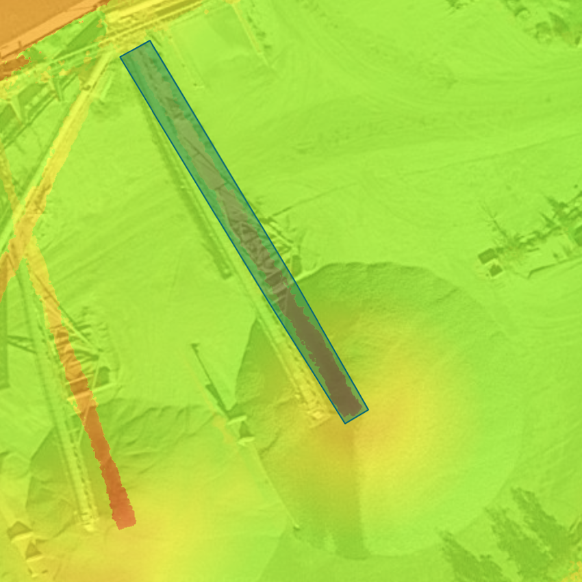 Before we start explaining the solution, let's first take a look at what the problem looks like. You want to measure the volume of a stockpile, but a conveyor belt is hanging over it. This means the volume between the stockpile and the conveyor belt is included in the result distorting your measurements.