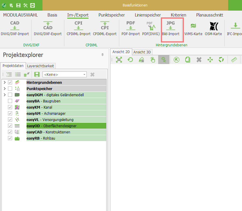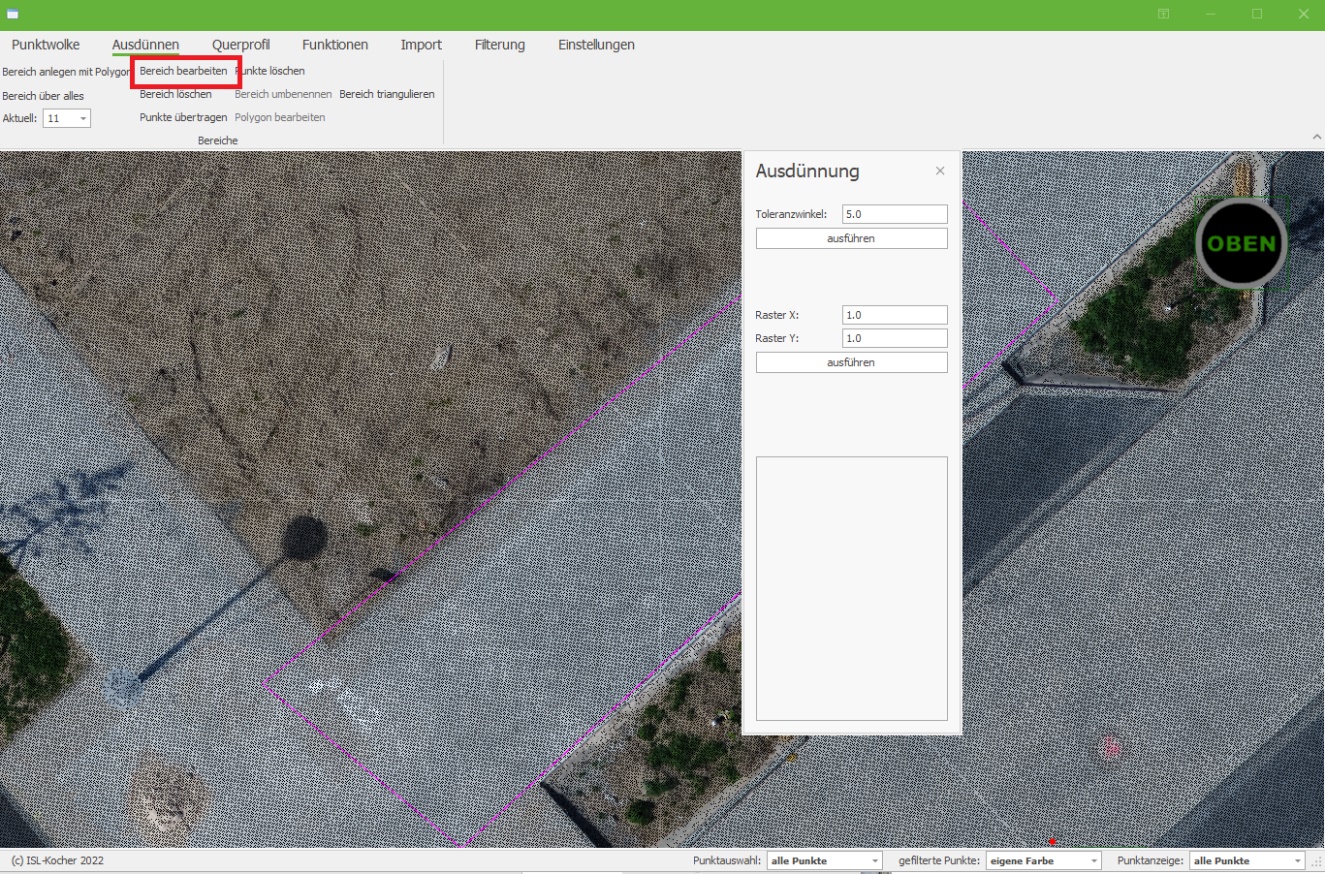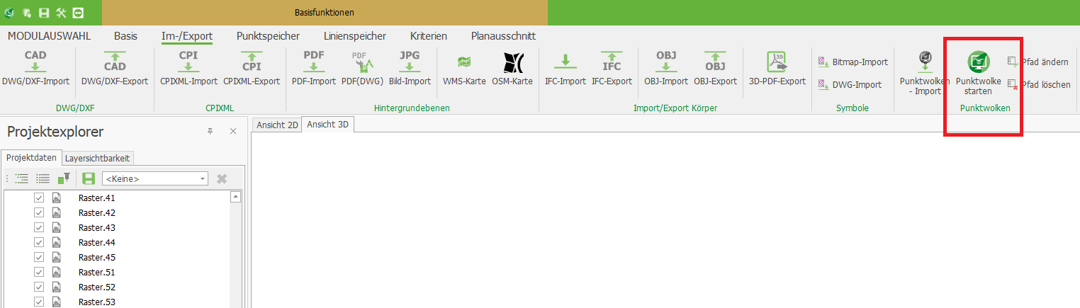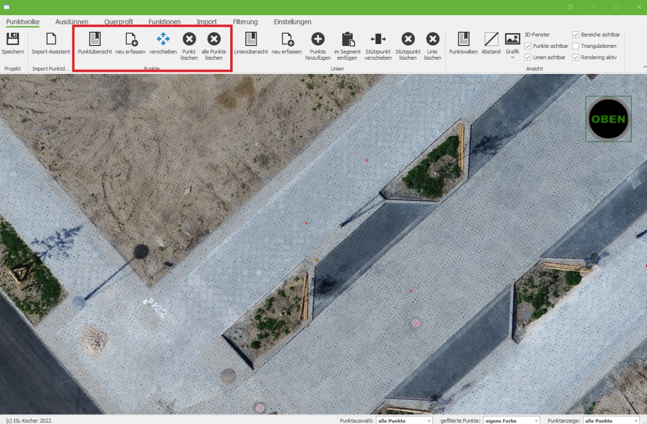 Unter dem Menü Punkte können in der Punktwolke Punkte erstellt und bearbeitet werden