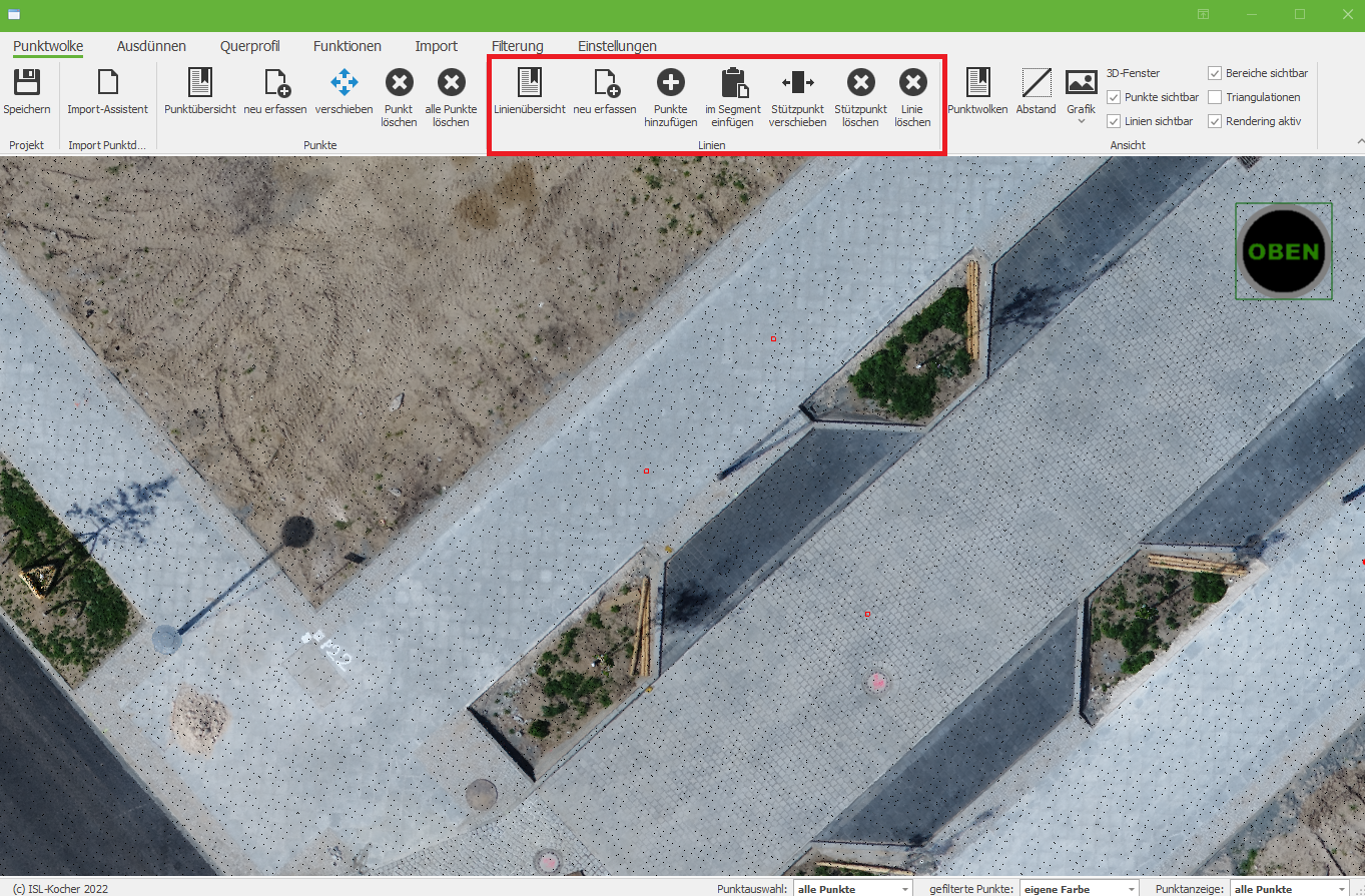 Unter dem Menü Linien können in der Punktwolke Linien erstellt und bearbeitet werden