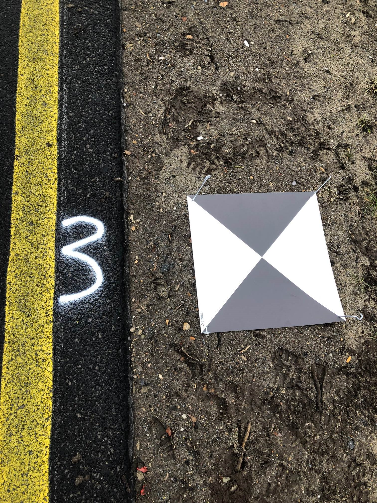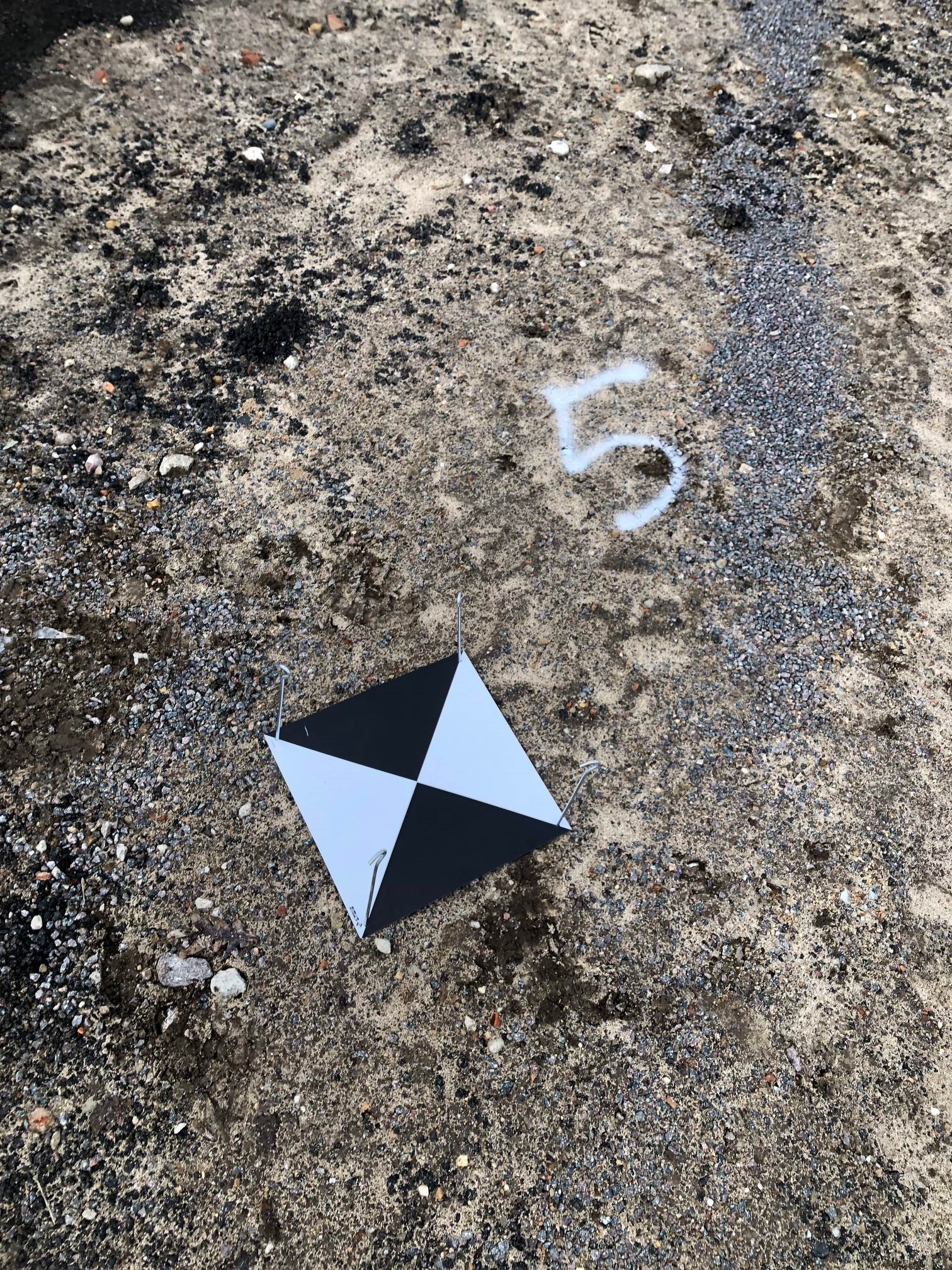 Wie auf den Bildern zu sehen ist, ist der Kontrast zwischen heller und dunkler Flächen wichtig zur Referenzierung. Die Luftbilder werden je nach Rahmenbedingungen in 30 m – 100 m Höhe aufgenommen, so dass nur mit hohem Kontrast und großer Fläche die Erkennung sichergestellt sein.