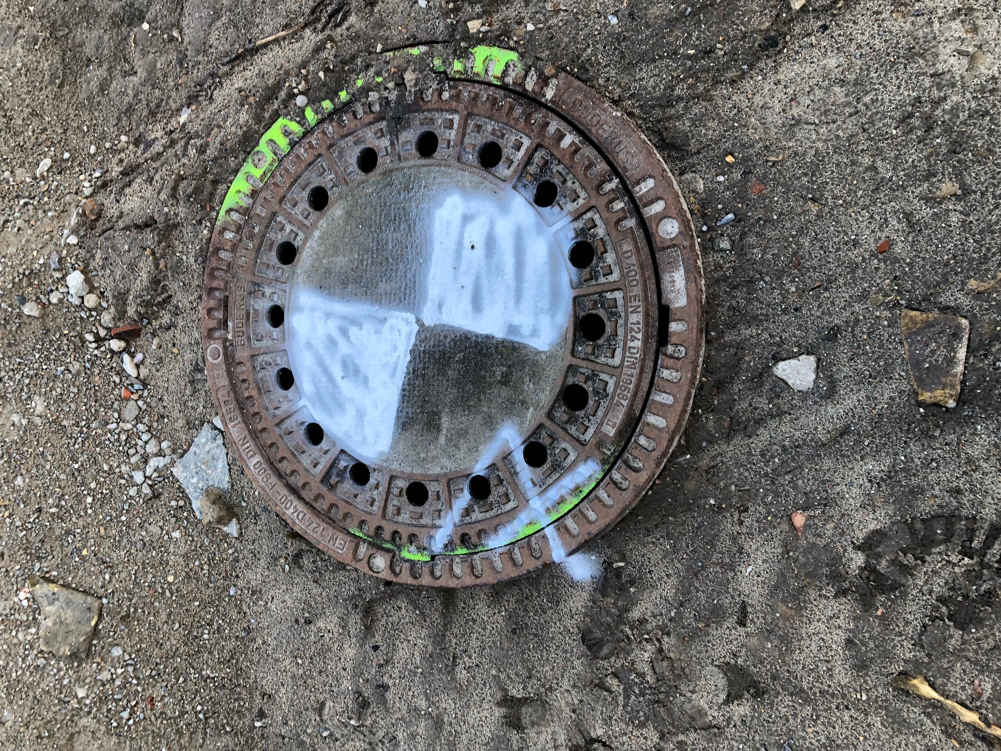 Etwaig könnten auch feste Vermessungsnägel aufgemessen werden und in regelmäßigen Abständen mit wetterfester Farbe die Quadranten aufgesprüht werden.