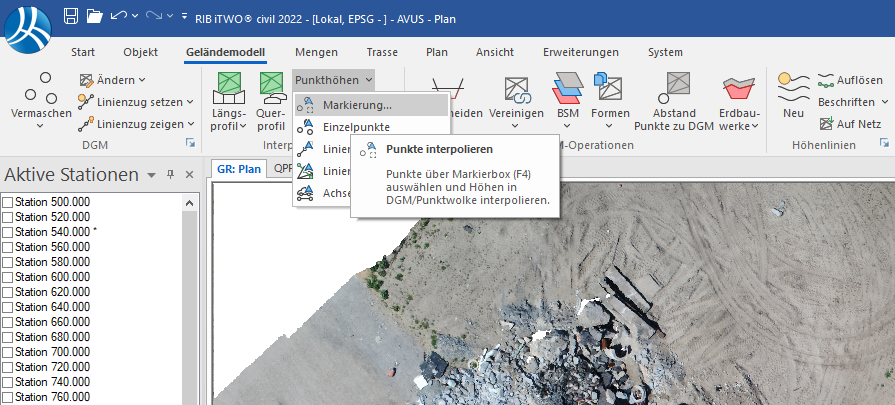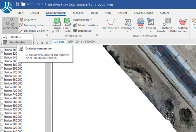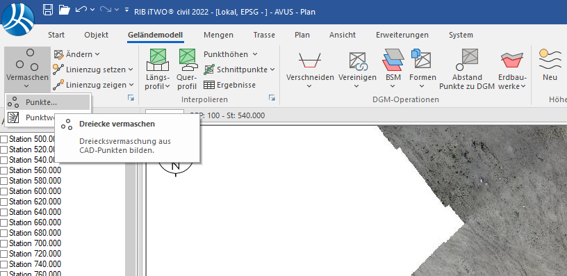 Nach der Erstellung eines Umring kann das DGM erstellt werden
