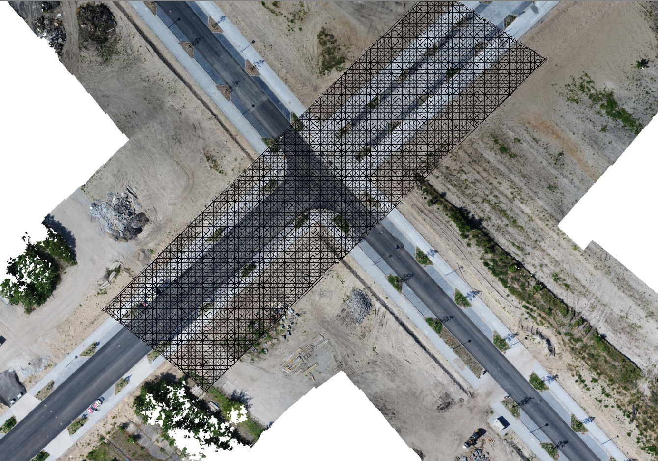 Die Vermaschung der Dreiecke wurde hier im Abstand von 1m erstellt siehe auch Optionen hier kann die weite eingestellt werden