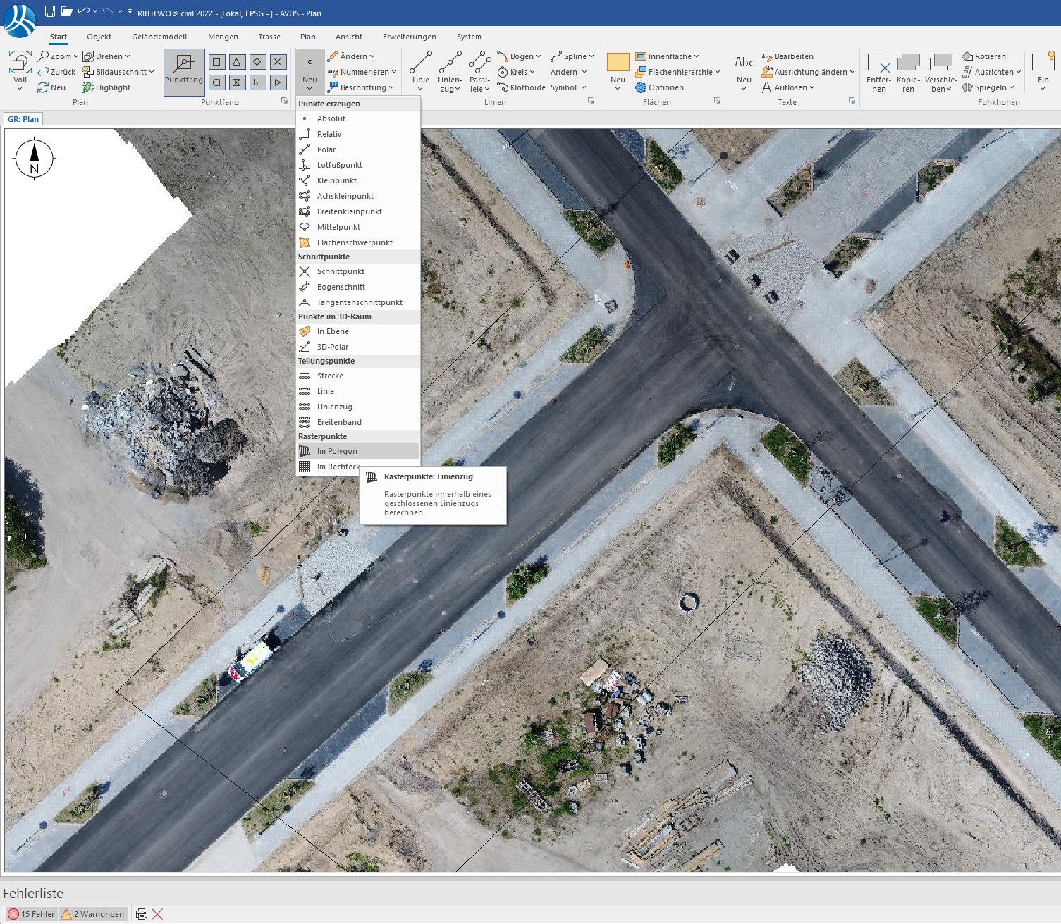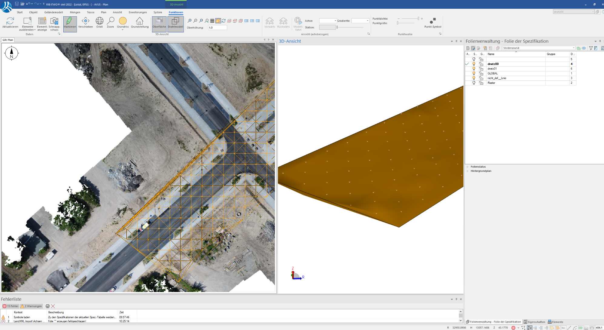 Es ist auch möglich 2D Elemente nachträglich auf die Punktwolke zu proizieren