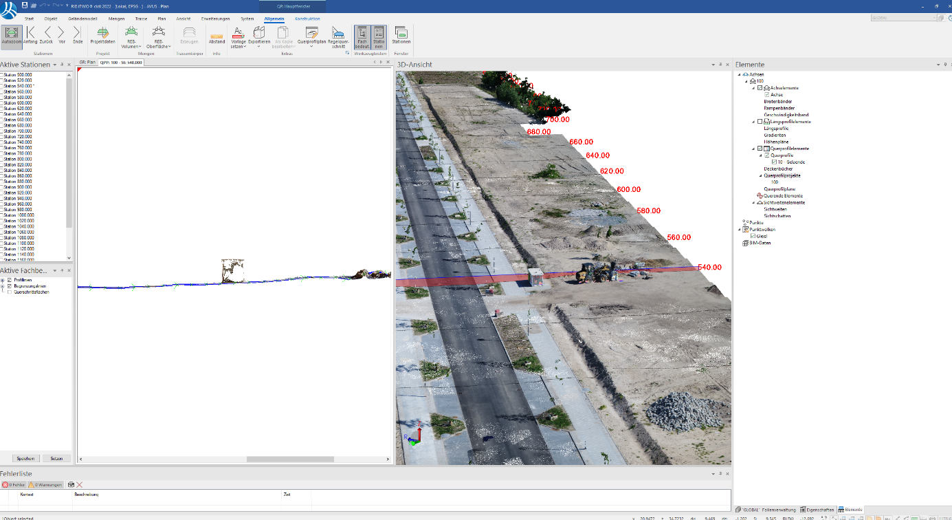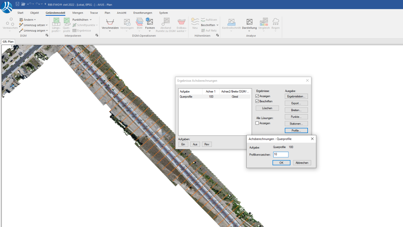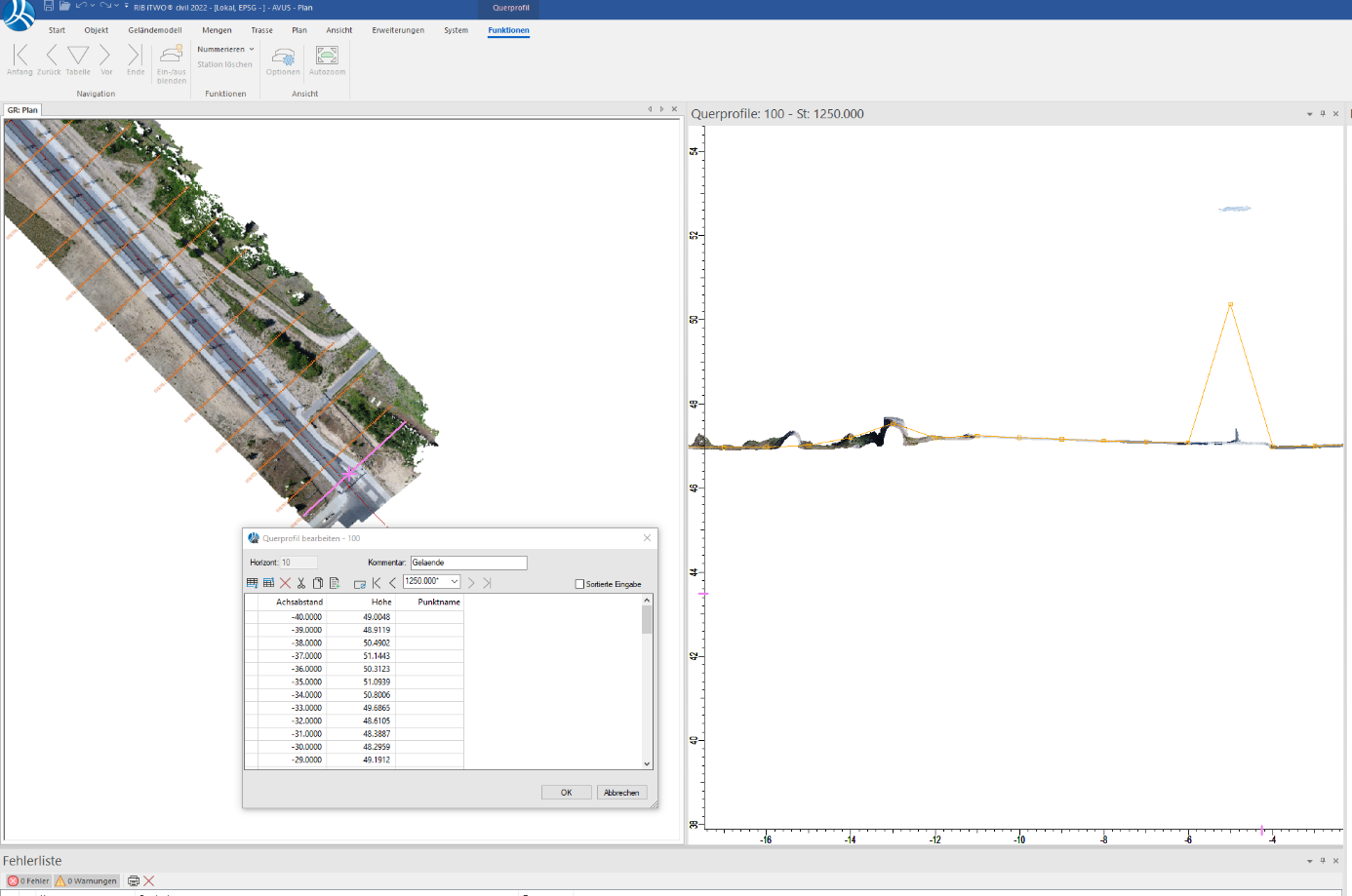 In der Querprofilsansicht können die Profillinien kontrolliert und editiert werden